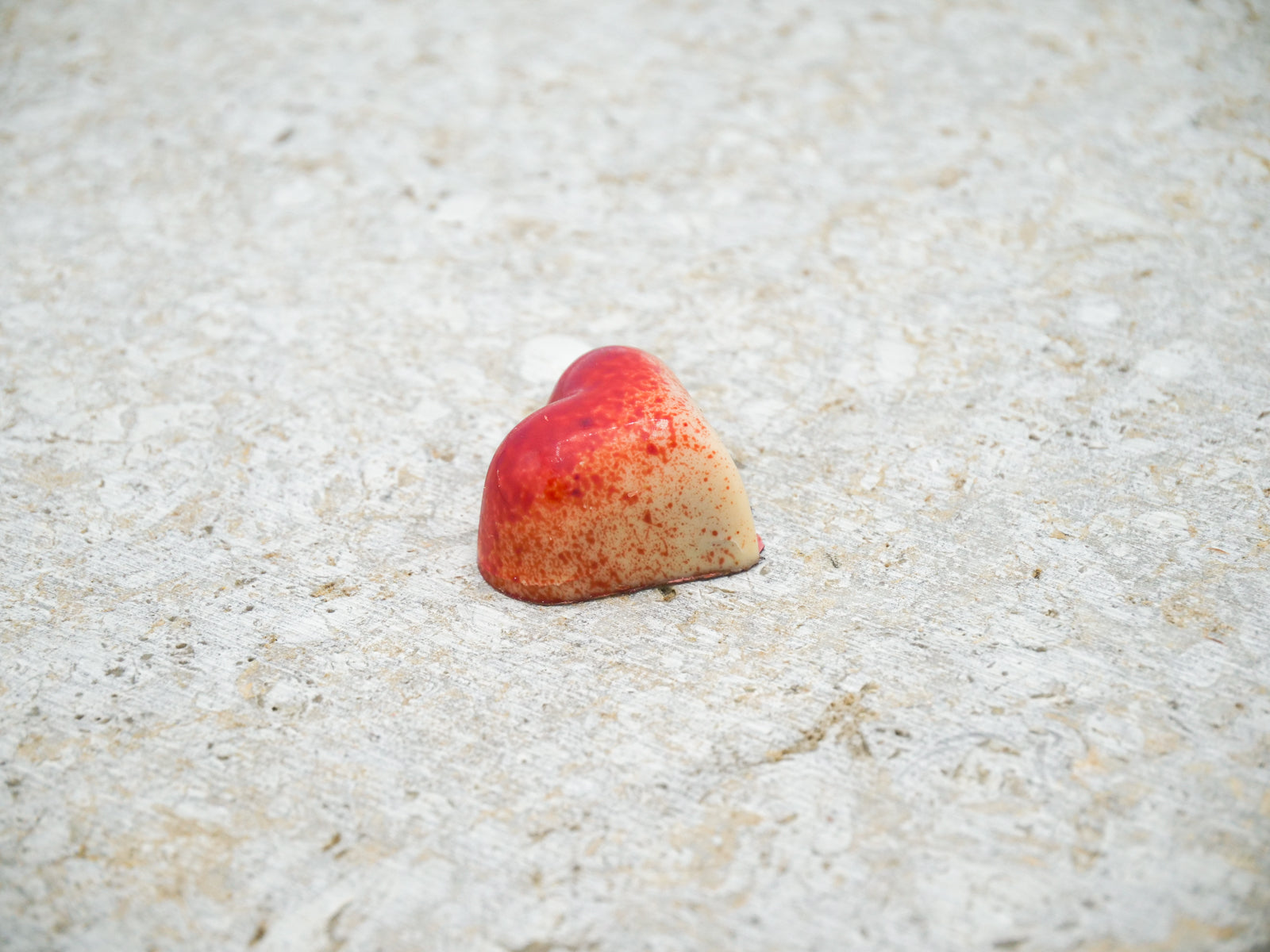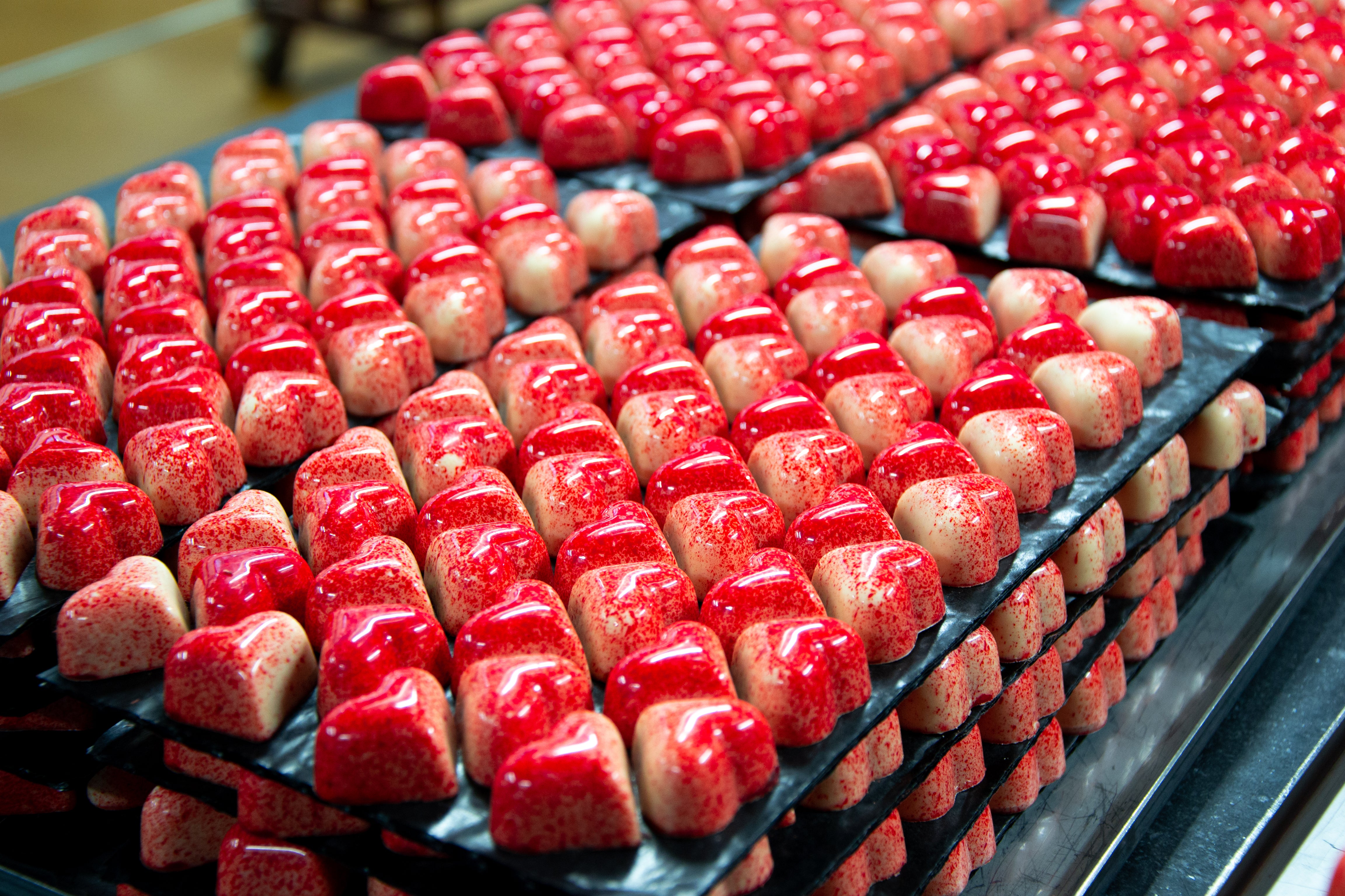 Sweetheart pralines filled with silky caramel. We create this guilty pleasure by heating the finest sugar up to 170°C to give it a beautiful golden brown color and amazing aroma. We immediately cool it down with a touch of cream to create the praline center. A delicate operation, requiring experience & a light touch. Resulting in a range of elegant pralines with a perfect balance between a fine outer chocolate bite & that surprising oozing liquid caramel inner.
