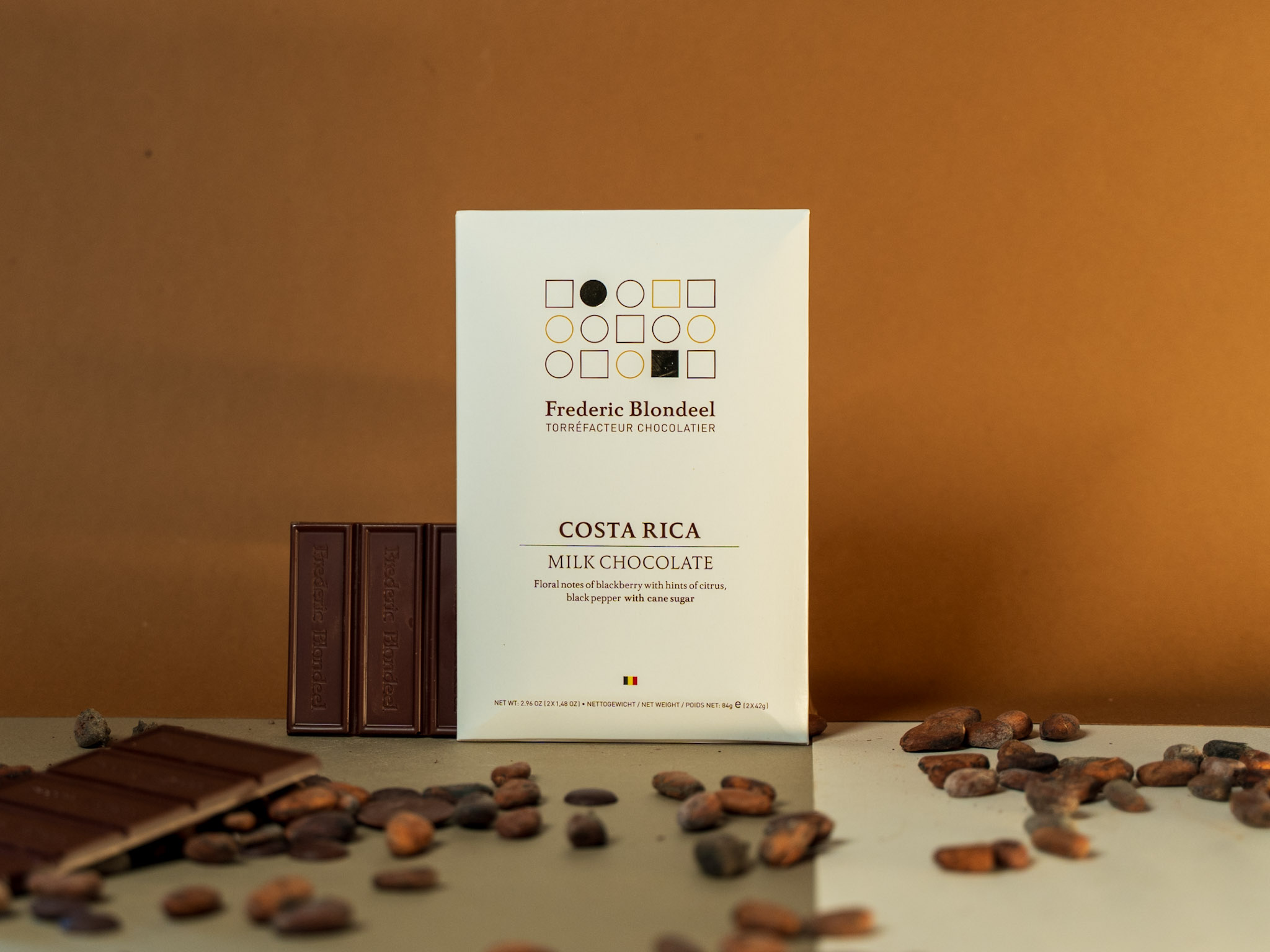 Pure chocolate paired with natural non refined cane sugar or coconut blossom sugar. Our 100% chocolate has no added sugar & let’s you discover its origins in its purest form. 1 tablet contains 2 chocolate bars of 42g each.